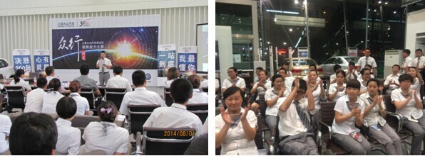 2014年"八一建軍節(jié)",在這個(gè)充滿紀(jì)念意義的日子,青海區(qū)域四家經(jīng)銷商的銷售戰(zhàn)士們-青海物產(chǎn)、賽亞金昊、金島興寶、格爾木都市汽貿(mào)共同會(huì)師青海物產(chǎn)汽貿(mào)公司展廳的比賽戰(zhàn)場(chǎng),兩兩對(duì)抗,為高原銷售精英的首場(chǎng)PK戰(zhàn)斗吹響了號(hào)角。