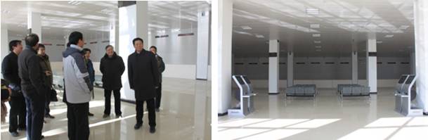 在保稅物流中心卡口上方"青海曹家堡保稅物流中心"以中英文兩種字體呈現(xiàn),海關(guān)標(biāo)識(shí)赫然醒目。王黎明副省長一行在實(shí)地查看了1#、2#保稅倉庫、卡口、查驗(yàn)庫、辦事大廳等設(shè)施,并邊走邊聽取物產(chǎn)集團(tuán)總經(jīng)理王玉輝關(guān)于工程施工進(jìn)展情況的匯報(bào)。