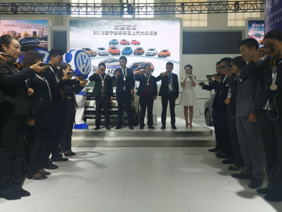 4月28日這天,清晨的陽關(guān)格外絢麗,車展也伴隨初生的旭日轟動開啟,物產(chǎn)汽貿(mào)職工各個精神抖擻,在分銷中心商務(wù)經(jīng)理、青海地區(qū)3家上汽大眾經(jīng)銷商總經(jīng)理的牽頭下,車展正式開始