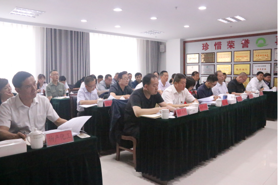 黨委書記、董事長王玉輝同志向考核小組介紹"三大園區(qū)"規(guī)劃建設(shè)