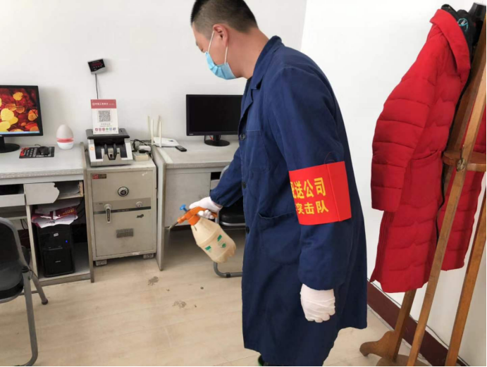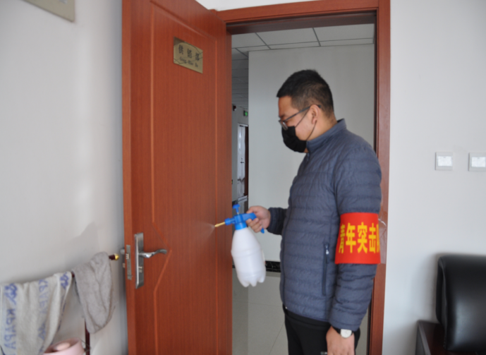 物產(chǎn)配送公司青年突擊隊(duì)抓好排查、有效防控,對(duì)公司19名團(tuán)員青年外出情況(包含外出地點(diǎn)、航班車次、居住地點(diǎn)、身體狀況等)進(jìn)行精準(zhǔn)摸排,對(duì)在崗員工每日兩次體溫測量進(jìn)行詳細(xì)登記。按時(shí)對(duì)3000平米辦公場所和生產(chǎn)經(jīng)營區(qū)域每日定期清潔消毒工作,在奪取防控斗爭勝利中爭當(dāng)排頭兵!