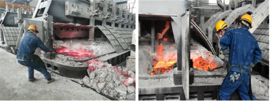 鏡頭三:電解車間"更換陽極作業(yè)"比武現(xiàn)場,兩車間選派了業(yè)務(wù)能力最強人員組成參賽隊對抗比拼。面對電解槽滾滾熱浪,每一名選手都沉著冷靜、從容應(yīng)對;他們密切配合、張弛有度,按照操作規(guī)程有序進行……