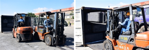 鏡頭五:散貨堆場內(nèi),工藝車隊"叉車卸運集裝箱"技術(shù)比武吸引了大量下班途中的職工駐足觀看。選手們以嫻熟的駕駛技術(shù),將集裝箱內(nèi)堆放的炭塊接連不斷地掏出,并運送至指定板車上。大家你追我趕、競賽氣氛異常激烈。
