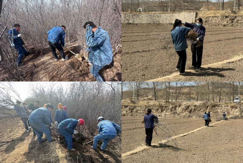 在大家的共同努力下,千余棵桃樹和紫丁香被連根“請(qǐng)”出,它們隊(duì)列整齊地矗立在綠化指定區(qū)域??粗矍耙言苑N完畢的小樹苗,黨員代表張濤同志感慨地說(shuō)到:今天的黨日、團(tuán)日活動(dòng)不僅讓我們有幸參與到“愛(ài)企、護(hù)企”行動(dòng)之中,用自己的雙手為物產(chǎn)北川工業(yè)物流園區(qū)域內(nèi)景觀增添了一片綠色、再造一處景觀。