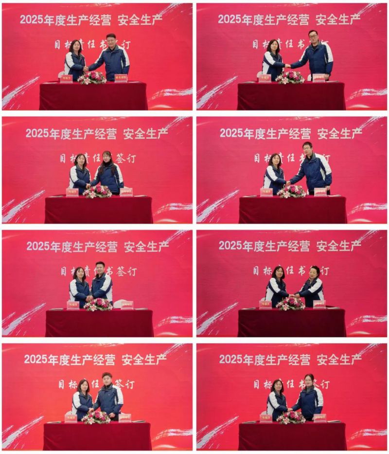 表彰之后,公司黨支部書記、董事長、總經(jīng)理杜慶華同志分別與公司各部門負責人簽訂2025年度生產(chǎn)經(jīng)營和安全生產(chǎn)工作目標責任書。