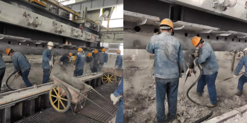 在每個大修槽大修的下午六點,天車隆隆的轟鳴聲、風鎬敲擊的脆響,交織成一首“戰(zhàn)斗序曲”。電解槽旁,十幾名職工正弓著腰,手持風鎬,一點點剝離槽內凝固的電解質。他們的工服早已被汗水浸透,又被高溫烤干,結出一層白花花的鹽霜。這是電解槽大修的第七個晝夜。走近清槽現場,一頂頂鮮艷的黃色安全帽,一聲聲震耳的電鎬聲,一把把明晃晃的鐵鍬,大家爭先恐后、分工明確、里應外合,一波接著一波,清槽工作開展的緊鑼密鼓、嚴絲合縫,一切繁雜工作顯得繁忙而又有序。清槽期間,由于任務量重,勞動強度大,為加速清理進度,大家干累了就在現場輪換原地休息,工作服濕了又干,干了又濕??粗謇沓鰜淼囊欢讯褟U渣和潔凈如新的電解槽,大家臉上露出欣慰的笑容。那笑容里,有完成任務的自豪,有戰(zhàn)勝困難的喜悅,更有對未來工作的堅定信心。